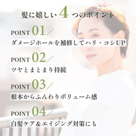 ボリューム不足、分け目の目立ちなどのお悩みに応えるべく開発。サロン帰りのような髪のための補修成分ヘマチンを、高濃度で配合した毛髪美容液です。髪になじませるとヘマチンが結合しようとする働きにより、ダメージで空洞化した部分に作用します。“徹底”補修の特性があるので、シャンプー後たった10秒のケアでいい、手軽なプロセスも特徴です。さらにプラセンタ&サイタイ同時抽出エキス※3とユーグレナエキス※4を配合。独自処方が毛髪の悩みをケアしてなりたいヘアスタイルを叶え、Quality Of Lifeを高めます。